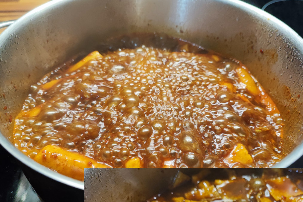 • Hinweis: Dies ist der entscheidende Schritt, der der Tteokbokki ihre charakteristische süß-scharfe Würze verleiht.